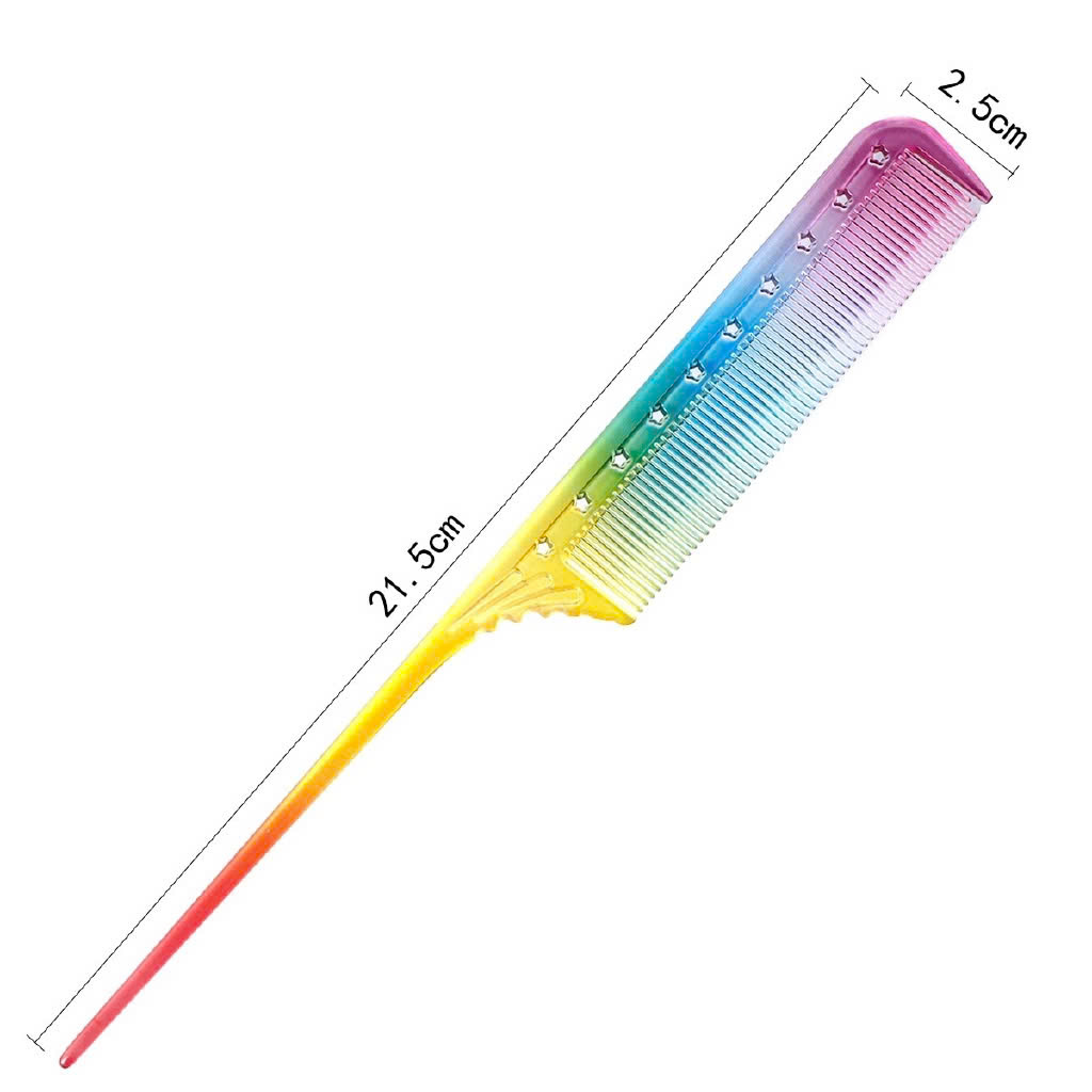 Lược chia tóc chuôi nhọn cầu vồng 7 màu là loại lược chuyên dụng trong ngành tóc, thường được các thợ làm tóc hoặc người yêu thích tạo kiểu tóc sử dụng.