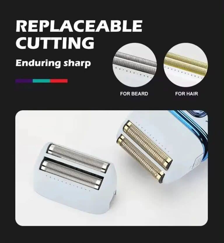 2. Lưới dao đôi nổi độc lập: Lưới dao đôi chuyển động qua lại vừa vặn với da trên diện rộng, cắt ở tốc độ cao và cạo sâu.