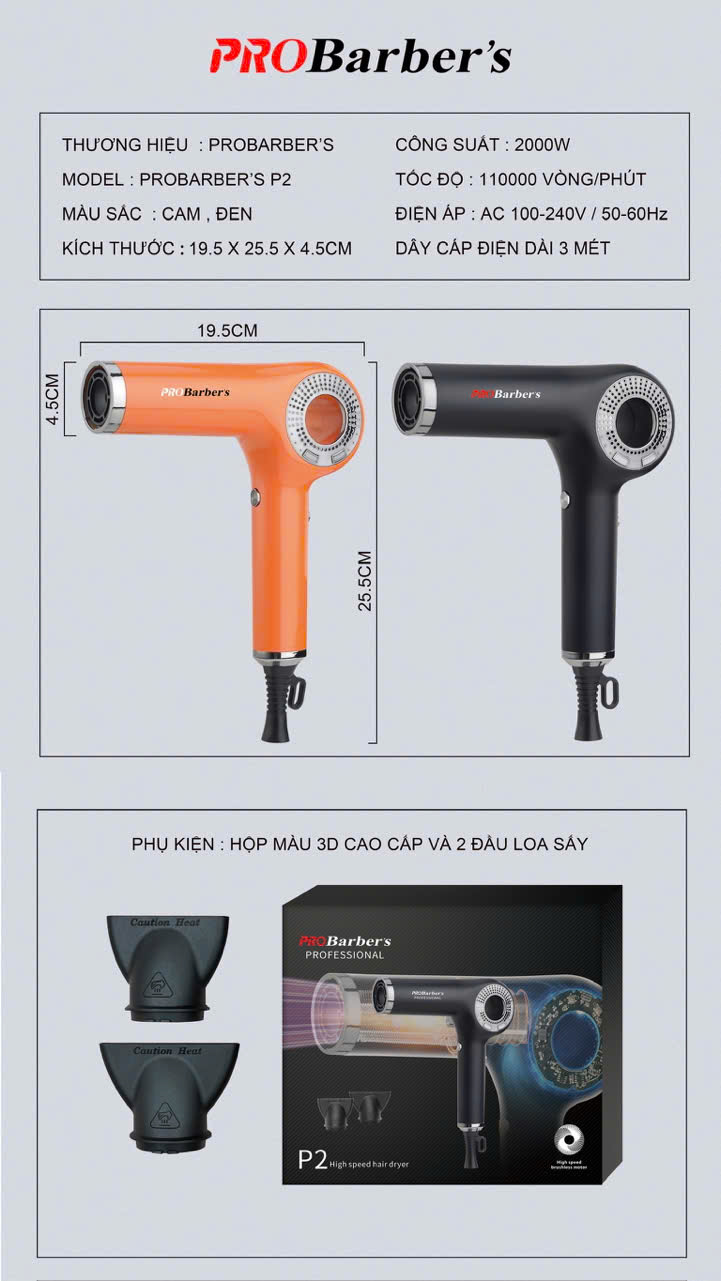 Máy Sấy Tóc Cao Cấp Probarbers P2 Nóng Lạnh 2 Chiều Chuyên Salon P2 Pro Barbers Hairdryer Có bán tại Hà Nội, vui lòng liên hệ 0976078164 hoặc 0983470875 để được tư vấn ship cod toàn quốc nhận hàng kiểm tra thanh toán