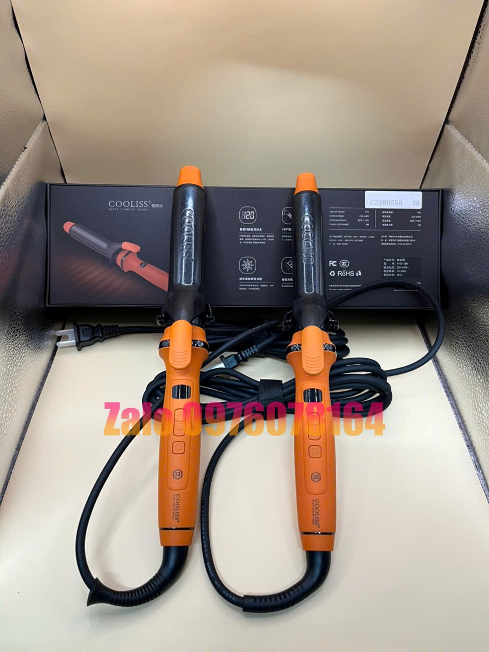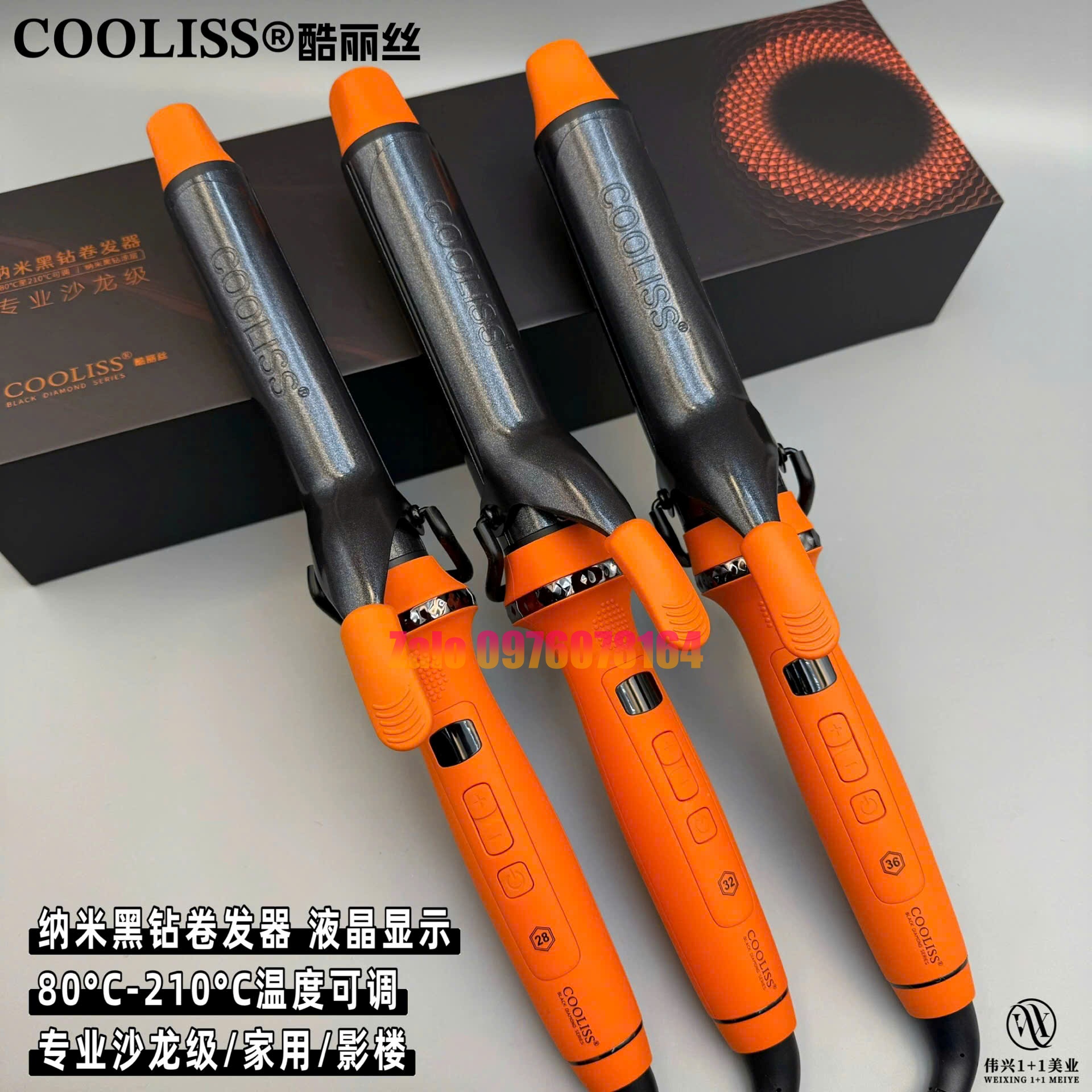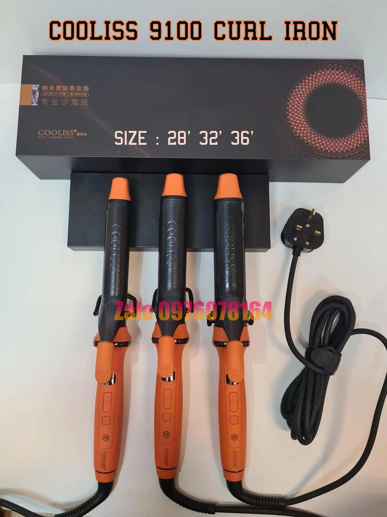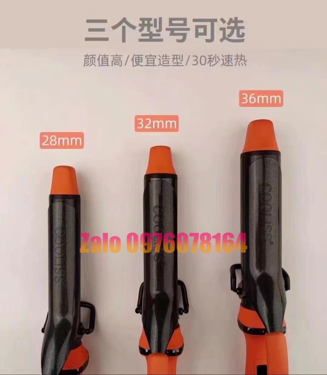 Máy Uốn Xoăn Giả COOLISS 9001 Màu Cam 28mm 32mm 36mm có bán tại Hà Nội, vui lòng liên hệ 0976078164 để được tư vấn ship cod toàn quốc nhận hàng kiểm tra thanh toán
