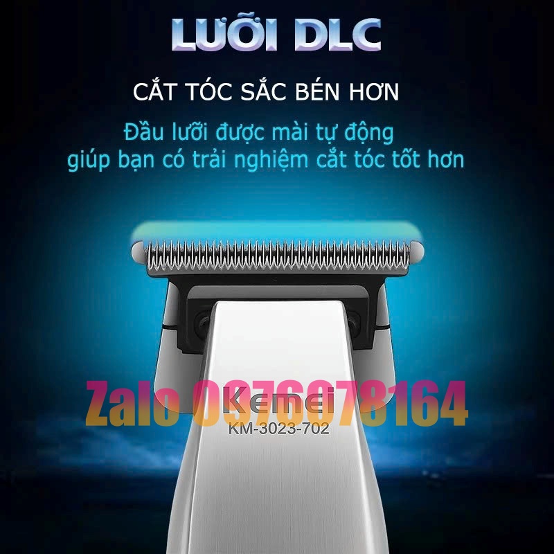 TÔNG ĐƠ CHẤN VIỀN KEMEI KM-3023-702 – ĐỘNG CƠ KHÔNG CHỔI THAN 9000RPM, PIN TRÂU – LƯỠI DLC SIÊU BÉN