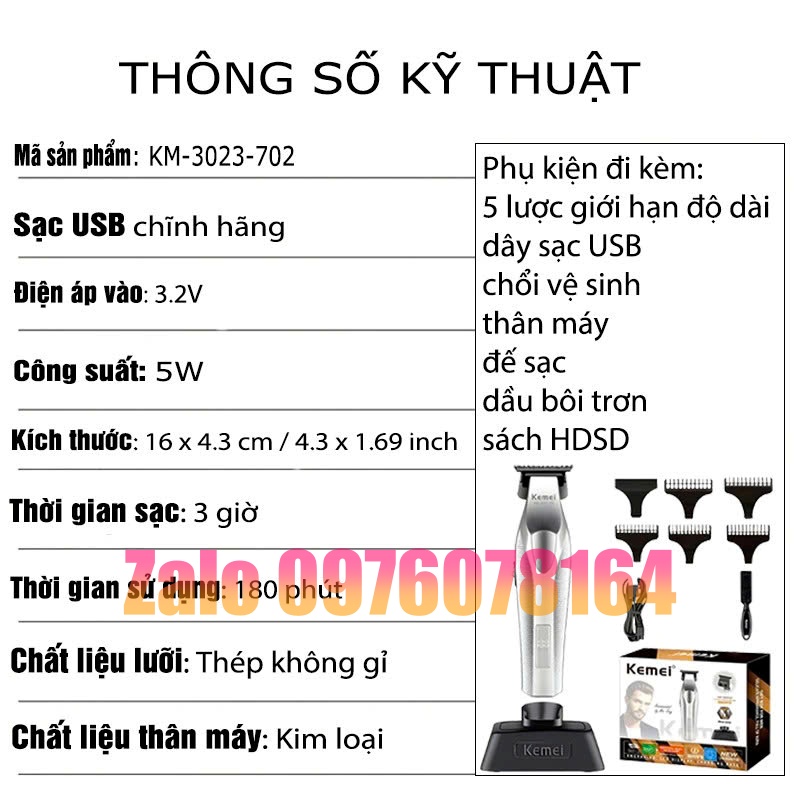01 tông đơ chính hãng KEMEI KM-3023-702