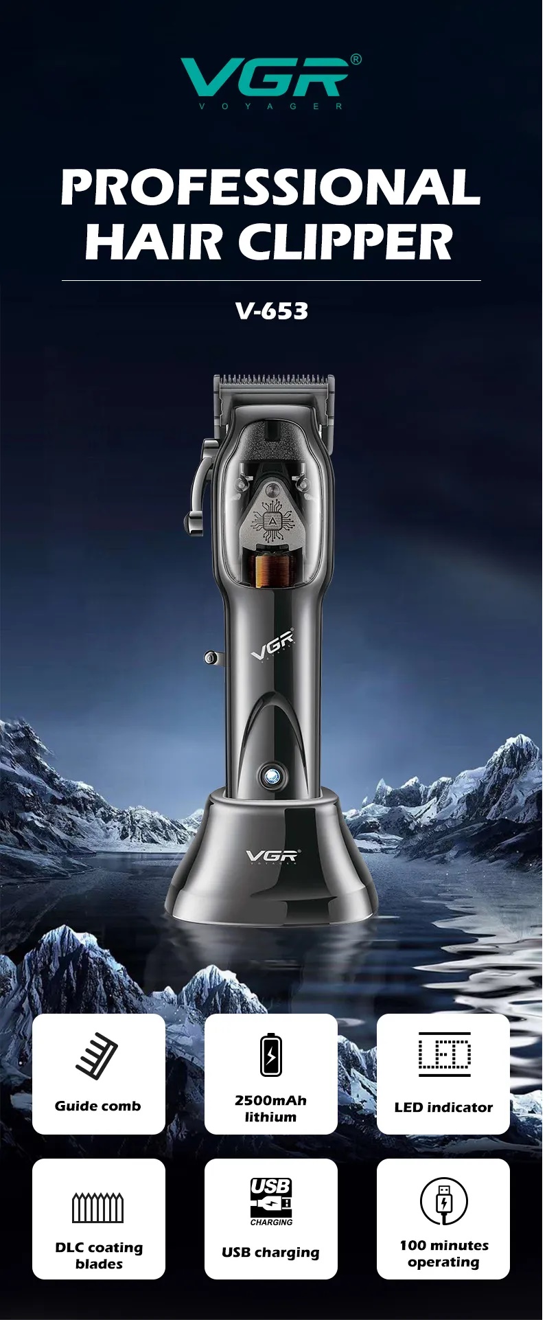 Giới thiệu Tông đơ cắt tóc động cơ từ tính VGR - 653 công suất 10W 9000rpm