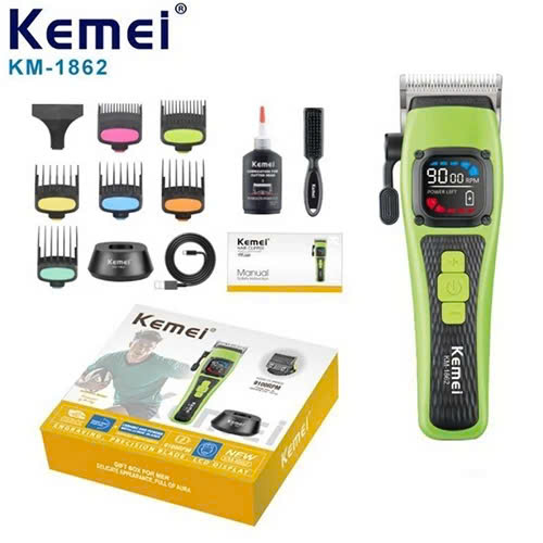 - Tông đơ cắt tóc cao cấp KEMEI 1862 là sản phẩm tông đơ cao cấp của thương hiệu KEMEI hiện nay. Đây là Tông Đơ Pin với kiểu dáng sang trọng & hoạt động mạnh mẽ, được rất nhiều nhà tạo mẫu tóc, các barber đẳng cấp thật sự luôn muốn sở hữu.