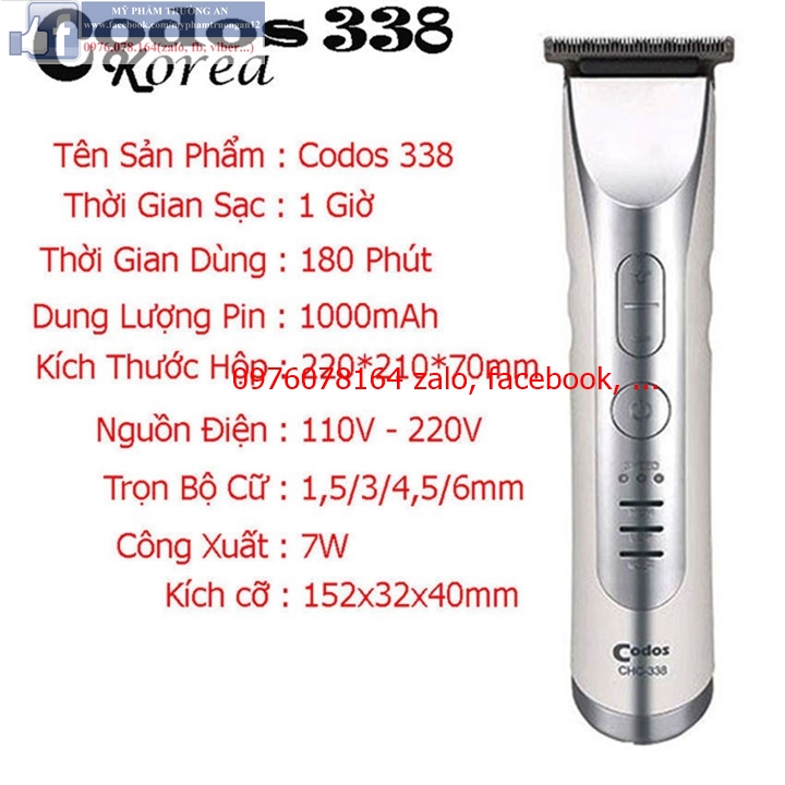 Tông đơ chấn viền Codos CHC-338 có bán tại Hà Nội, vui lòng liên hệ 0976078164 hoặc 0983470875 để được tư vấn ship cod toàn quốc nhận hàng kiểm tra thanh toán