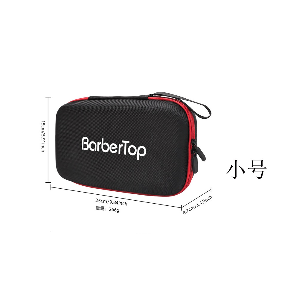 Với thiết kế nhỏ gọn, độc đáo chiều rộng 25cm, chiều cao 8.7cm và chiều sâu 15cm vừa nhỏ gọn, vừa thời trang, khó kéo màu đỏ nổi bật cùng chữ BarberTop màu trắng trên nên đen tạo độ chất riêng biệt của một barber